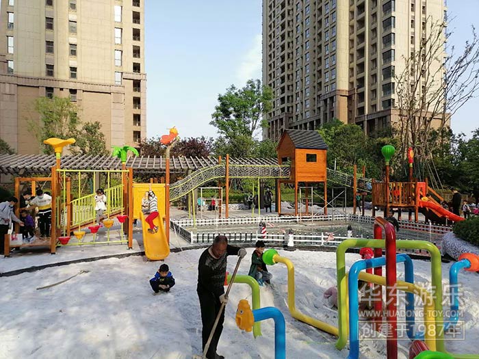 該項目采用非標定制木制工藝,有滑梯、沙池、傳聲筒 、爬網(wǎng)已經(jīng)音樂系列的敲打設(shè)備,整體設(shè)計完美,符合房地產(chǎn)整體規(guī)劃。