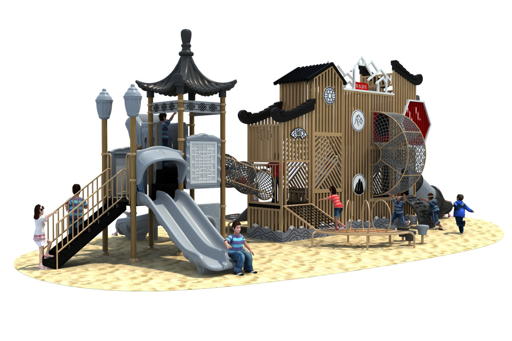 • 中國(guó)風(fēng)系列是一種具有中國(guó)風(fēng)建筑特色的大型滑梯組合,以蘇州園林與徽派建筑為靈感,將涼亭、房屋、大紅燈籠融入現(xiàn)代游樂(lè)設(shè)備,體現(xiàn)建筑美學(xué)的簡(jiǎn)潔、復(fù)古、大方,為孩子打造一個(gè)奇妙的游樂(lè)世界,積極培養(yǎng)孩子對(duì)中國(guó)傳統(tǒng)文化的熱愛(ài),弘揚(yáng)中國(guó)傳統(tǒng)與親身體驗(yàn)。