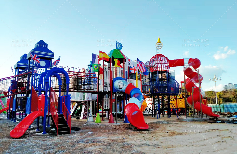 該游樂園選用的是華東游樂自主生產(chǎn)和研發(fā)的跨國系列大型組合滑梯,該滑梯具有爬網(wǎng)、攀爬墻、旋轉滑梯、空中爬網(wǎng)、U型網(wǎng)橋、平衡吊環(huán)等功能,是一款風格多樣、功能齊全的游樂設備,深受小朋友們的喜愛。
