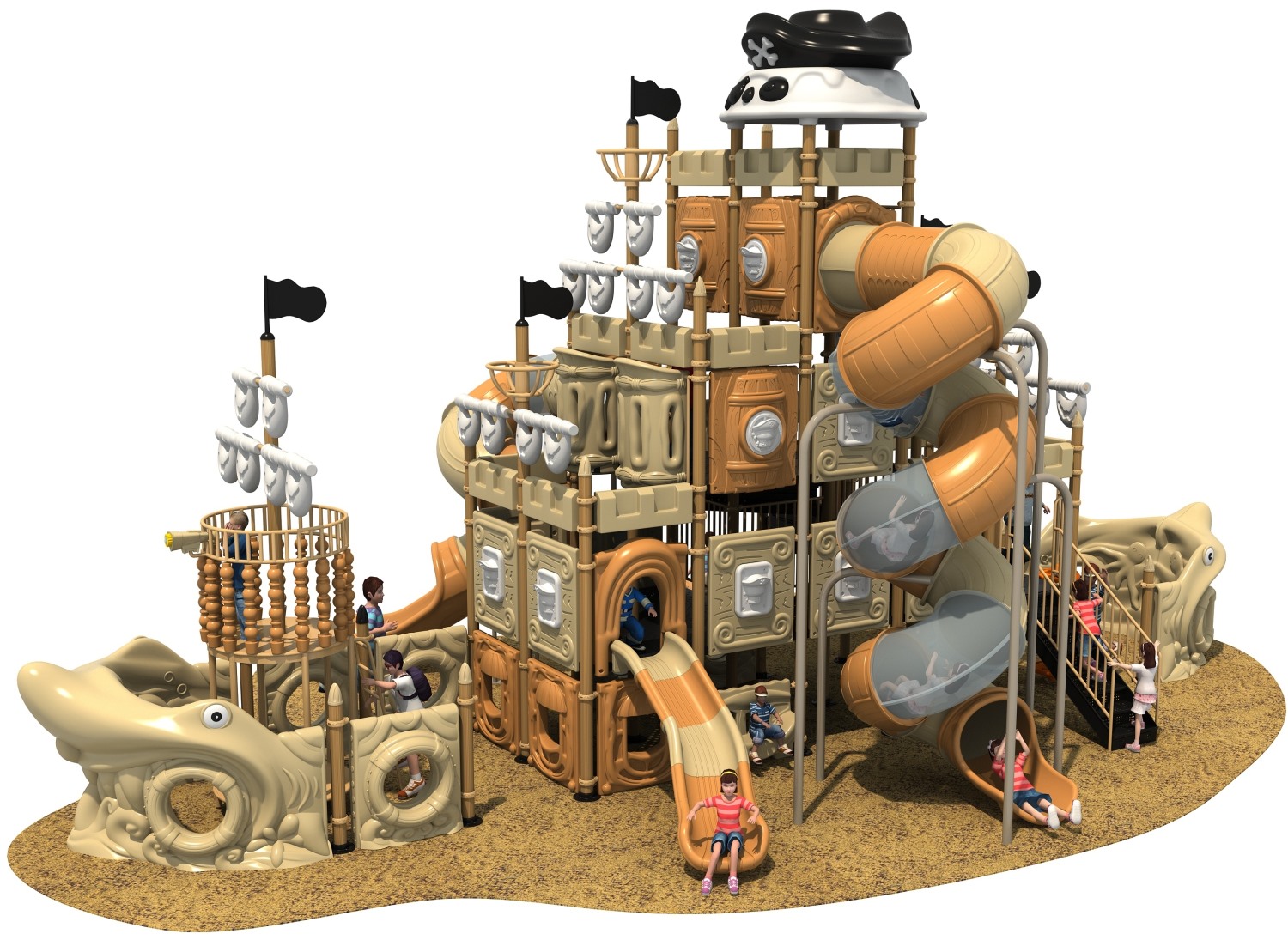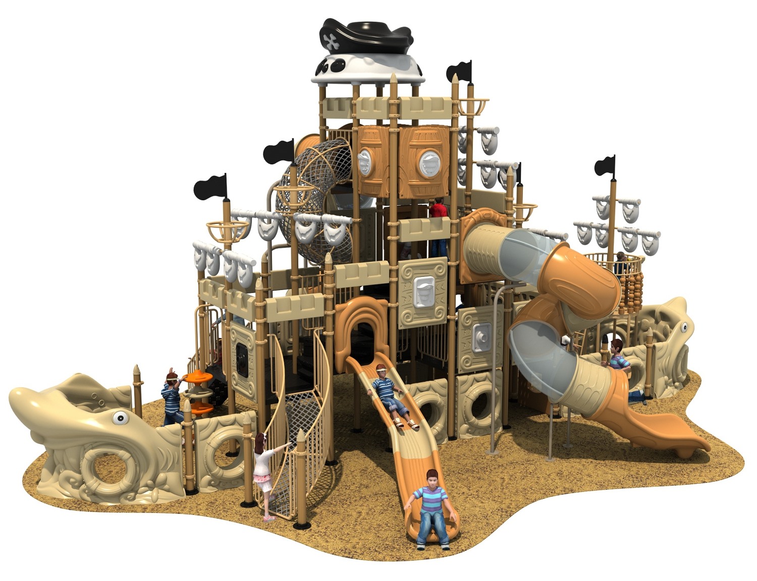 • 登上Jack船長(zhǎng)的船,漸漸駛?cè)氪蠛?,耳邊似乎傳?lái)海盜們吹響的起錨號(hào)角聲,這是幽靈海盜即將出海,開始新一輪的爭(zhēng)奪和冒險(xiǎn)。華東海盜船系列,以海盜船冒險(xiǎn)刺激為設(shè)計(jì)主題,通過(guò)多樣化的運(yùn)動(dòng)組合,成就孩子們海盜冒險(xiǎn)的夢(mèng)想。