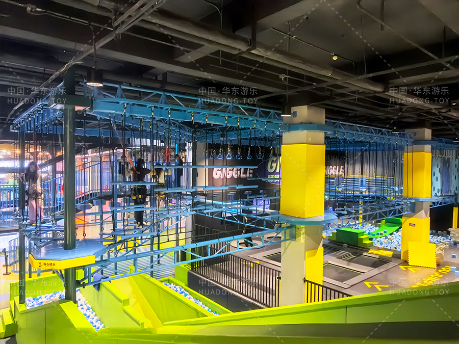 高空拓展區(qū)使用航空級鋁合金支架與雙安全繩設(shè)計,通過歐盟EN1176安全認證。